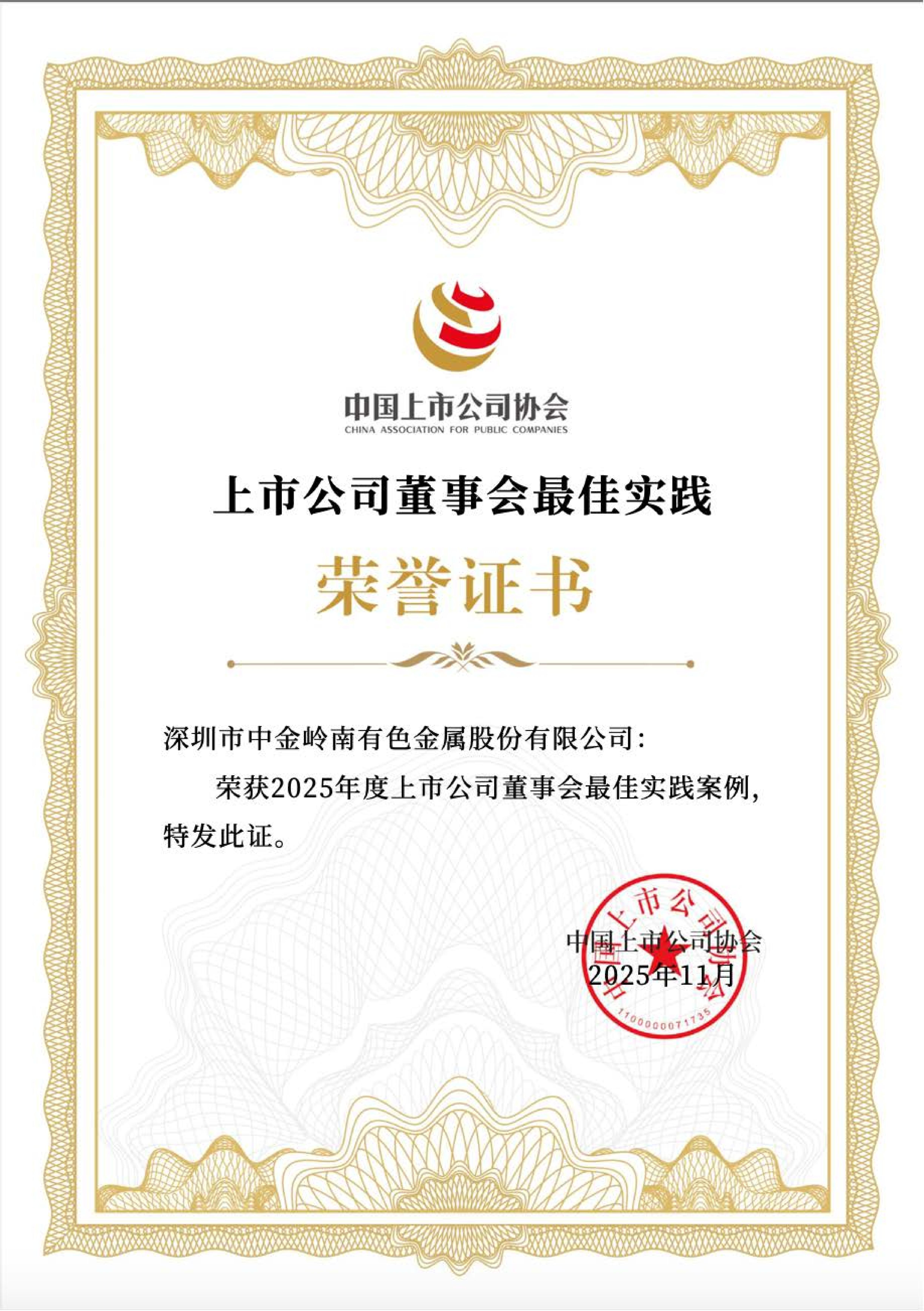 董事会建设是资本市场基础制度建设的核心环节,对提升上市公司质量、防范金融风险、增强投资者信心具有关键作用。此次中金岭南获评“最佳实践案例”,充分体现了资本市场对中金岭南董事会专业能力、规范运作与治理实效的高度认可。